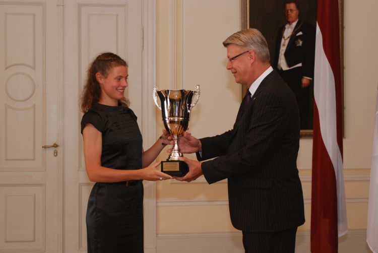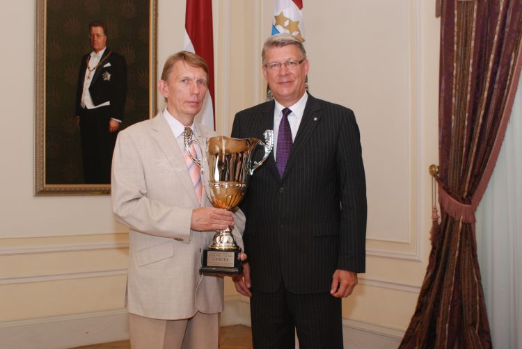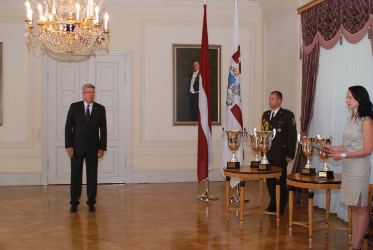Valsts prezidenta kausu pasniegšana vieglatlētikas sacensību uzvarētājiem
